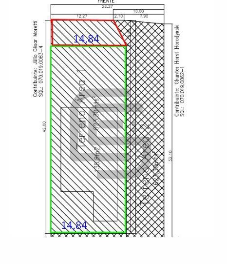 📐 Terreno de 620m² (conforme mapa e demarcação em verde), com espaço ideal para desenvolvimento imobiliário.